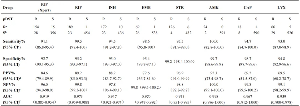 Table 2 TBseq®對(duì)不同結(jié)核藥物耐藥的預(yù)測(cè)能力